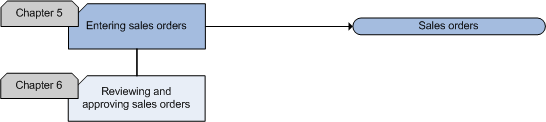This chapter describes the process of entering a sales order in Exact Sales. The flowchart shows the steps of the process and the accompanying functionality in Exact Financials.