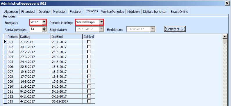 Kies voor de knop genereren en de periodes worden automatisch gegenereerd aan de hand van de gekozen periode-indeling