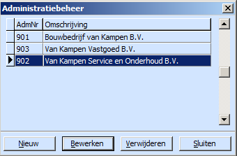 Ga binnen Exact AEC naar [Bestand, Administratiebeheer]