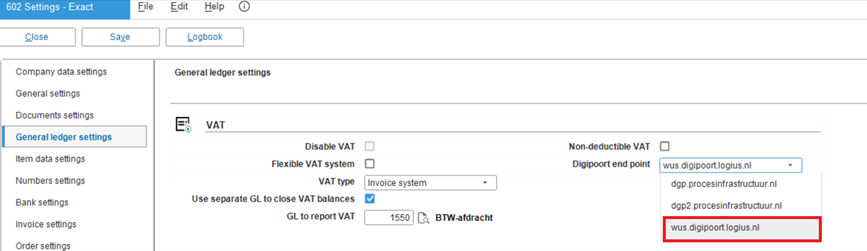 In this product update, we have added the wus.digipoort.logius.nl option at Digipoort end point in the VAT section at . Both pre-production and production environments now use updated domains and service paths for submission and status retrieval.