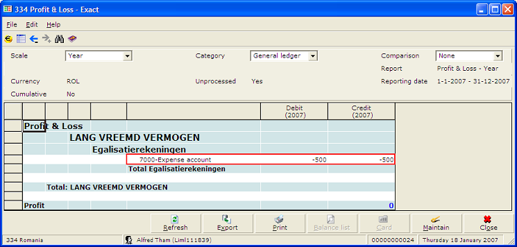 'Profit & Loss'; Presentation = 'Debit / Credit';