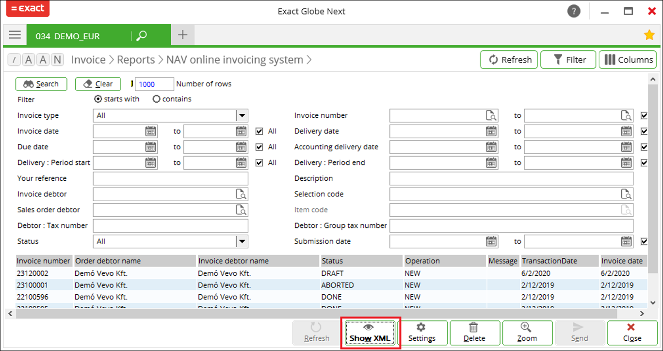Due to the enhancement, the previous version 1.1 has been made obsolete. It is mandatory to change to version 2.0 by April 1, 2020 at 00:00. Effective onwards, the data supply under the previous version 1.1 will no longer be possible. For more information, see https://onlineszamla-test.nav.gov.hu/home.