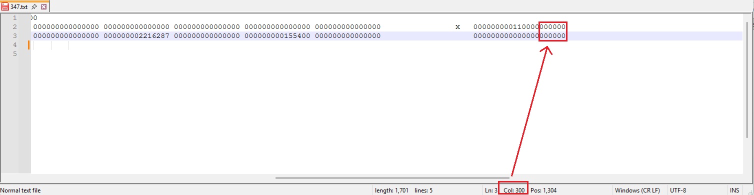 The default value for the field 300 – 500: BLANCO will be set to “0”. Field 306 - 500 will be blank.