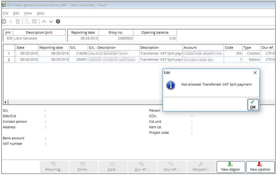 These journals will not be able to use the split payment VAT codes that have