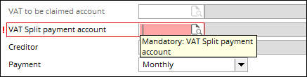 selected, it is mandatory to define the VAT Split payment account field.