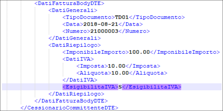 transactions will be indicated in the report by the <EsigibilitaIVA>
