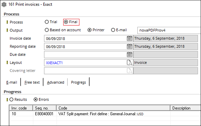 grouped by the split payment VAT code and will use the general ledger that has