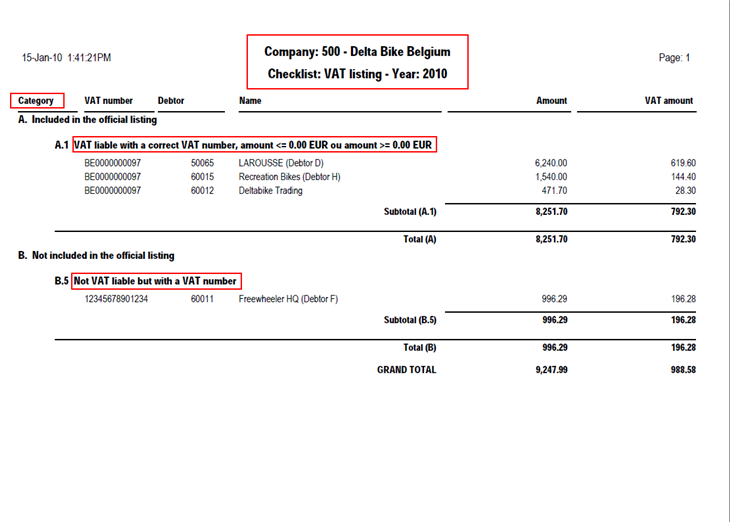 VAT listing - checklist report