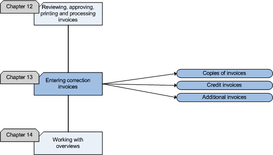 This chapter describes the process of creating correction invoices. The flowchart illustrates the steps in this process and the matching functionality in Exact Sales.