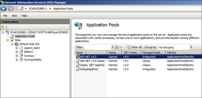 Note: If you cannot restart the web server due to any possible reasons, you can restart the Exact Synergy Enterprise sites (the newly created and the existing web sites) manually.