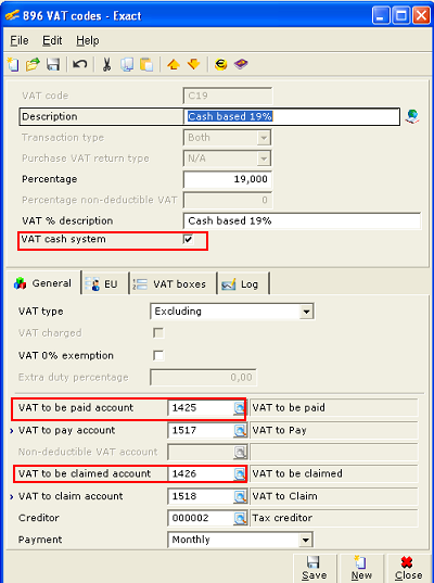 1. Create a new VAT code C19 under System/General/Countries/Tax codes
