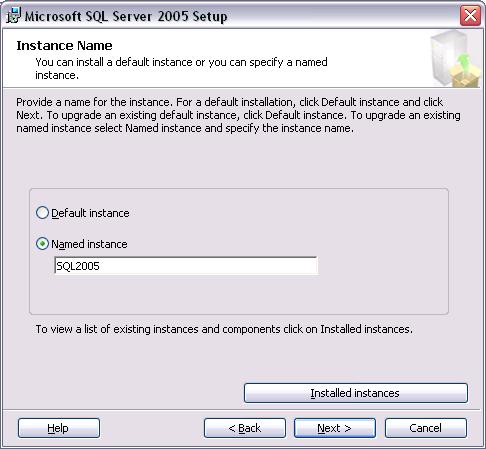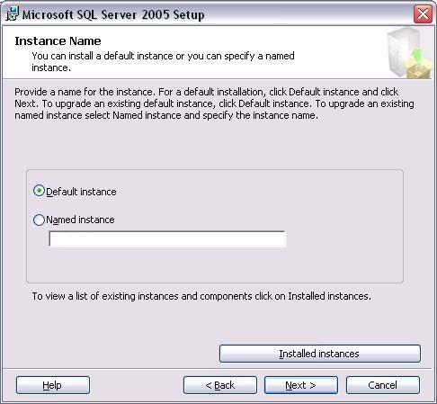 - For more information about instance naming rules, click Help at the bottom of the page, or see the Instance Name topic in SQL Server 2005 Books Online.