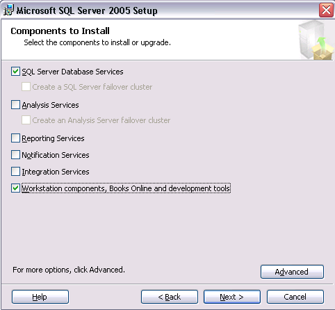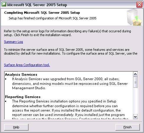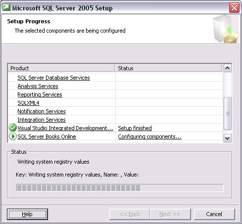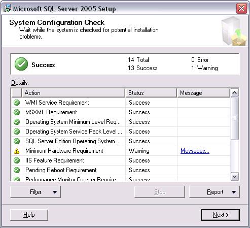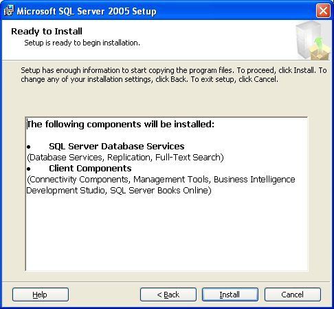 Once these prerequisites are met, proceed to install the SQL Server 2005.
