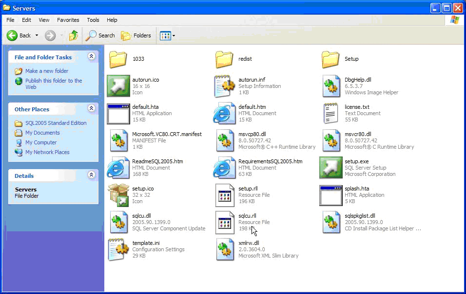 To begin the installation process, insert the SQL Server 2005 DVD into your DVD drive. If the autorun feature on your DVD drive does not launch the installation program, navigate to the root of the DVD and launch splash.hta. If installing from a network share, navigate to the network folder and launch splash.hta.