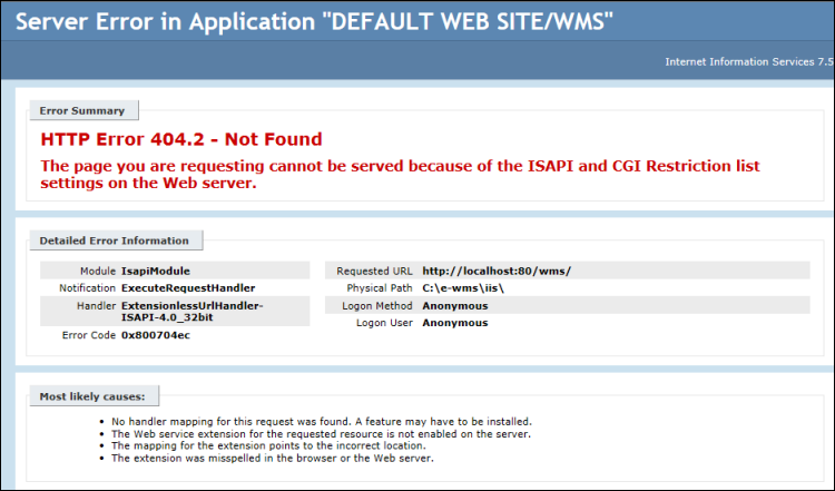 E-WMS ASP error "The remote server returned an error: (404) Not found"