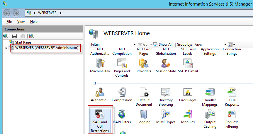 Click on the server name and then select 'ISAPI and CGI Restrictions in the