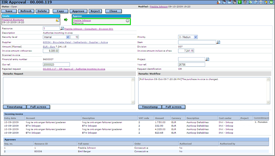Note: When a request is rejected by one of the authorizers, the IIR entry will remain in the overview of the IIR entry screen. To resubmit the IIR entry for approval, edit the IIR entry and save without changing the entry. All the corresponding previous requests will be rejected and new requests will be created.
