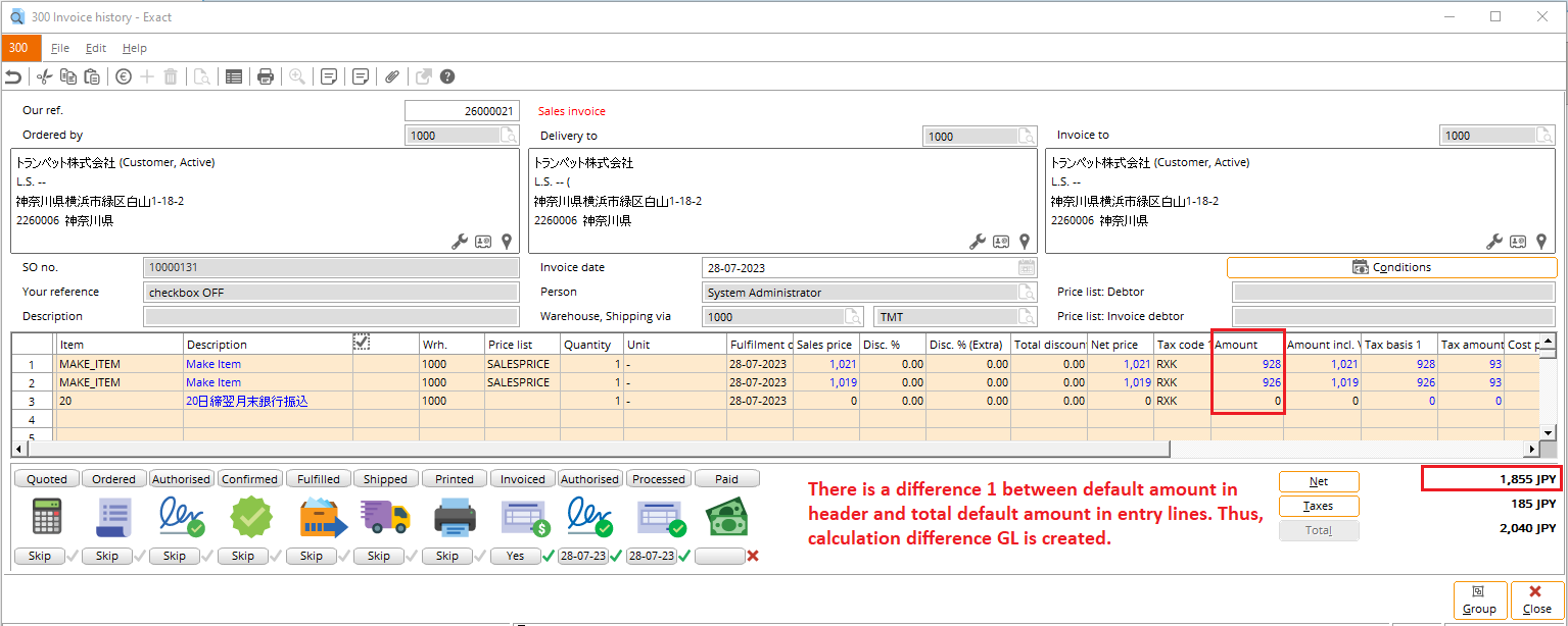 PU 503 | 502 | 501 (Globe+) and 424 (Globe): Price differences for invoices based on settings (Japanese legislation)