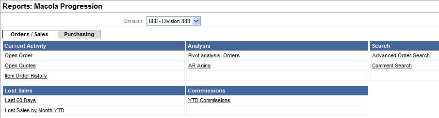 Select a division for the report. These are back office companies set up in InterConnect. |